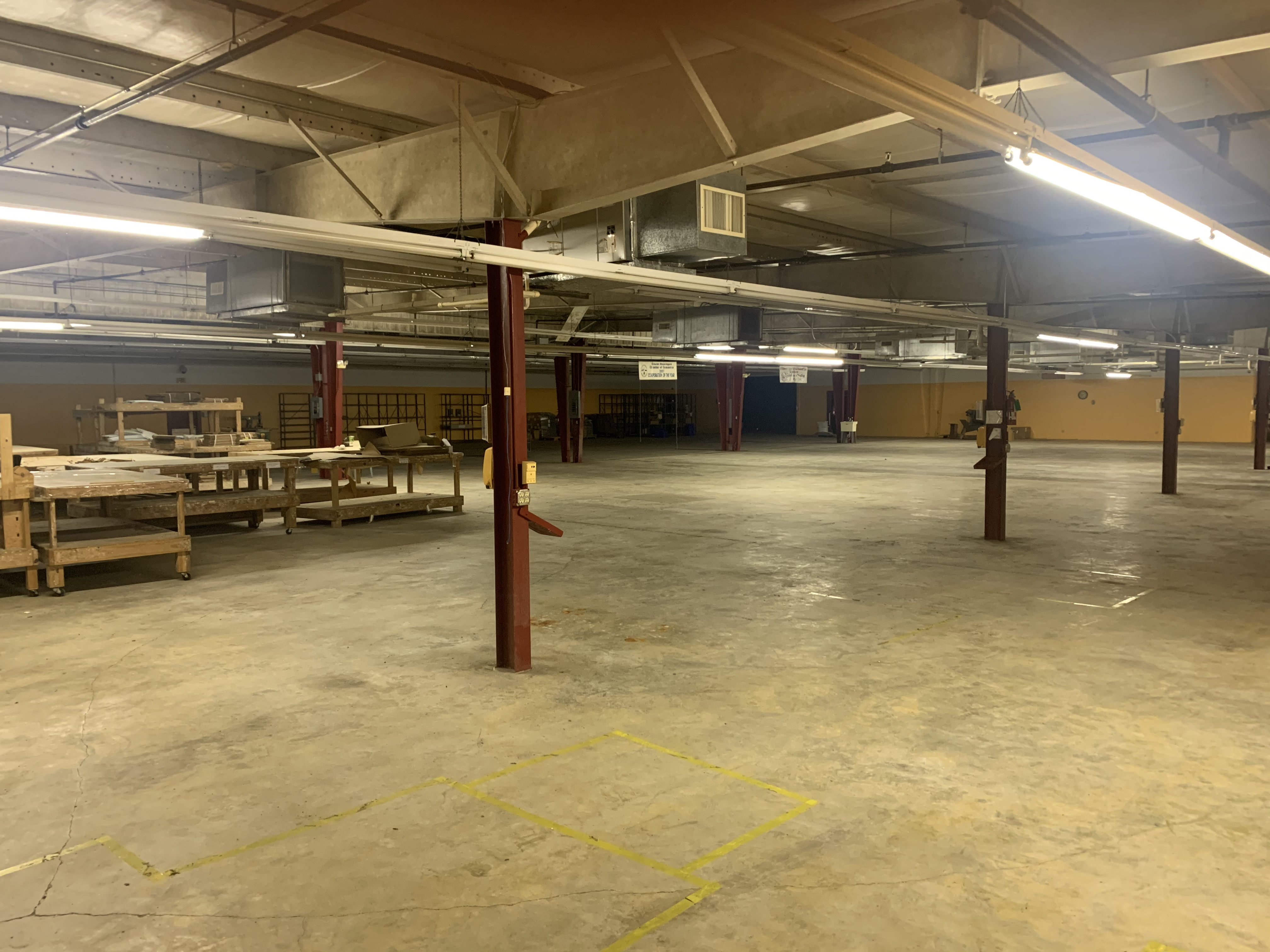 | Space | Size | Column Spacing | Ceiling Height | Eave Height | Air Conditioning | Heating |